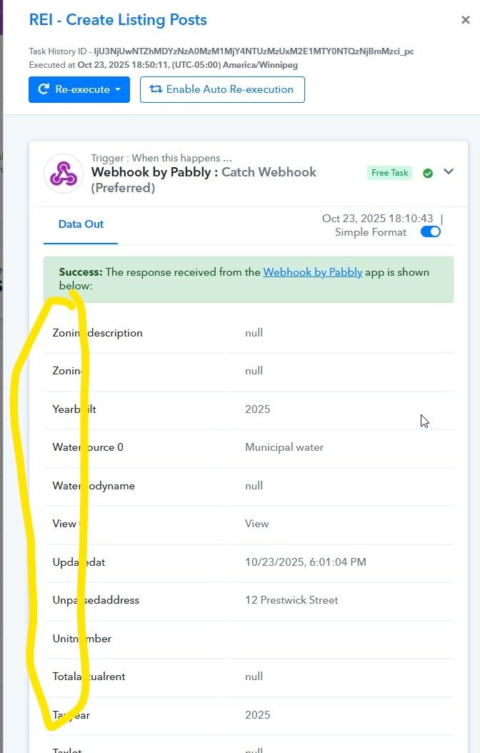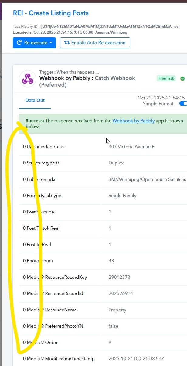 I need help with forwarded data. I have a workflow that receives data that looks like the image I attached with no leading zeros but when I try to apply some logic within Pabbly Connect and then use the Data Forwarder, no matter what I try to do, the data is all being bundled within an array so when it goes to the same webhook for the workflow that receives the data, the leading zero break everything since it's beaving like it's a layer deeper in an array. How do I stop this from happening so I can send the data in the format that's expected by the workflow webhook but also without the data separating into separate fields? I can have the data separate and then grab each field for the dataset, I just want to forward the data. It's the same data so why can't I forward it in the same way it was received?