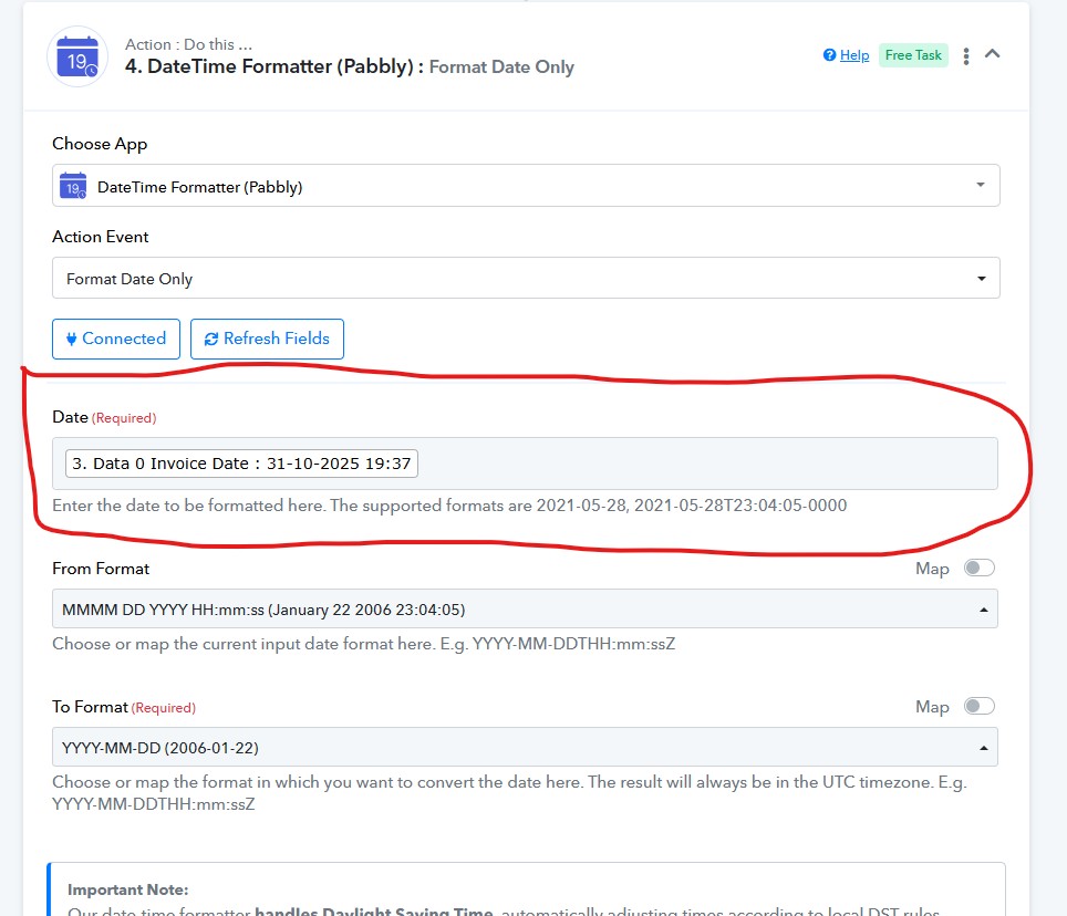 I created a workflow but I got stucked at time formator in Amazon csv file Date like :31-10-2025 19:37