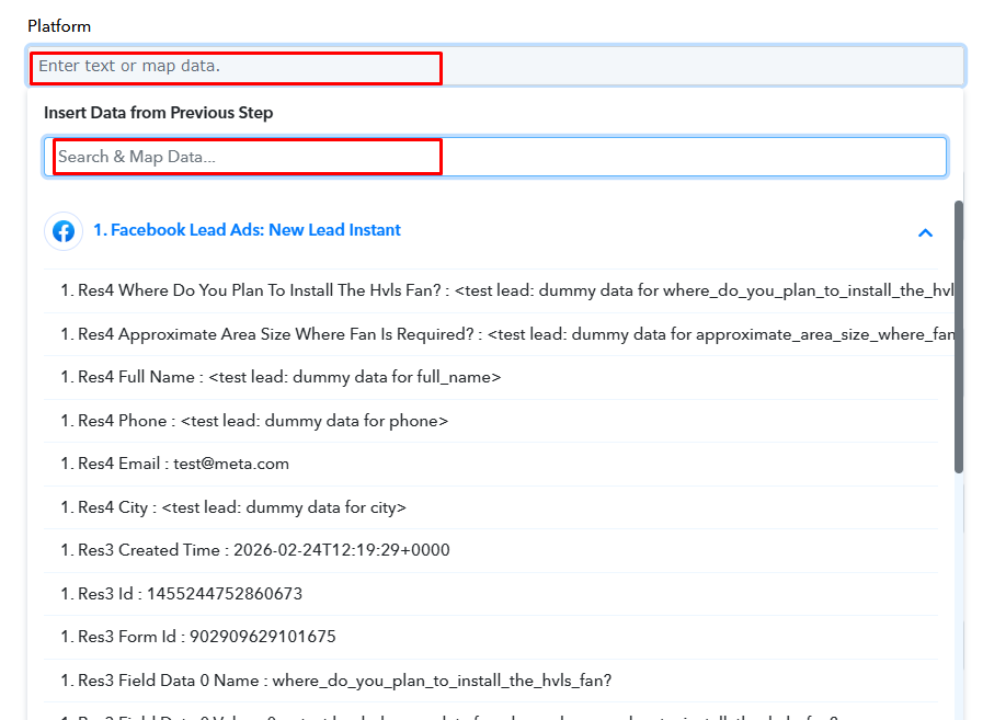 We then selected the latest response, and in the captured data we found a field named “Res3 Platform”, which indicates the platform from which the lead was generated (for example: fb for Facebook).